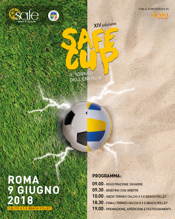 La SAFE CUP 2018, evento organizzato da Safe Risorse ed Energia, si svolgerà in un’unica giornata e vedrà le squadre rappresentanti delle principali Istituzioni ed aziende del settore energia e ambiente si sfideranno in competizioni sportive di calcio a 5 e beach volley.