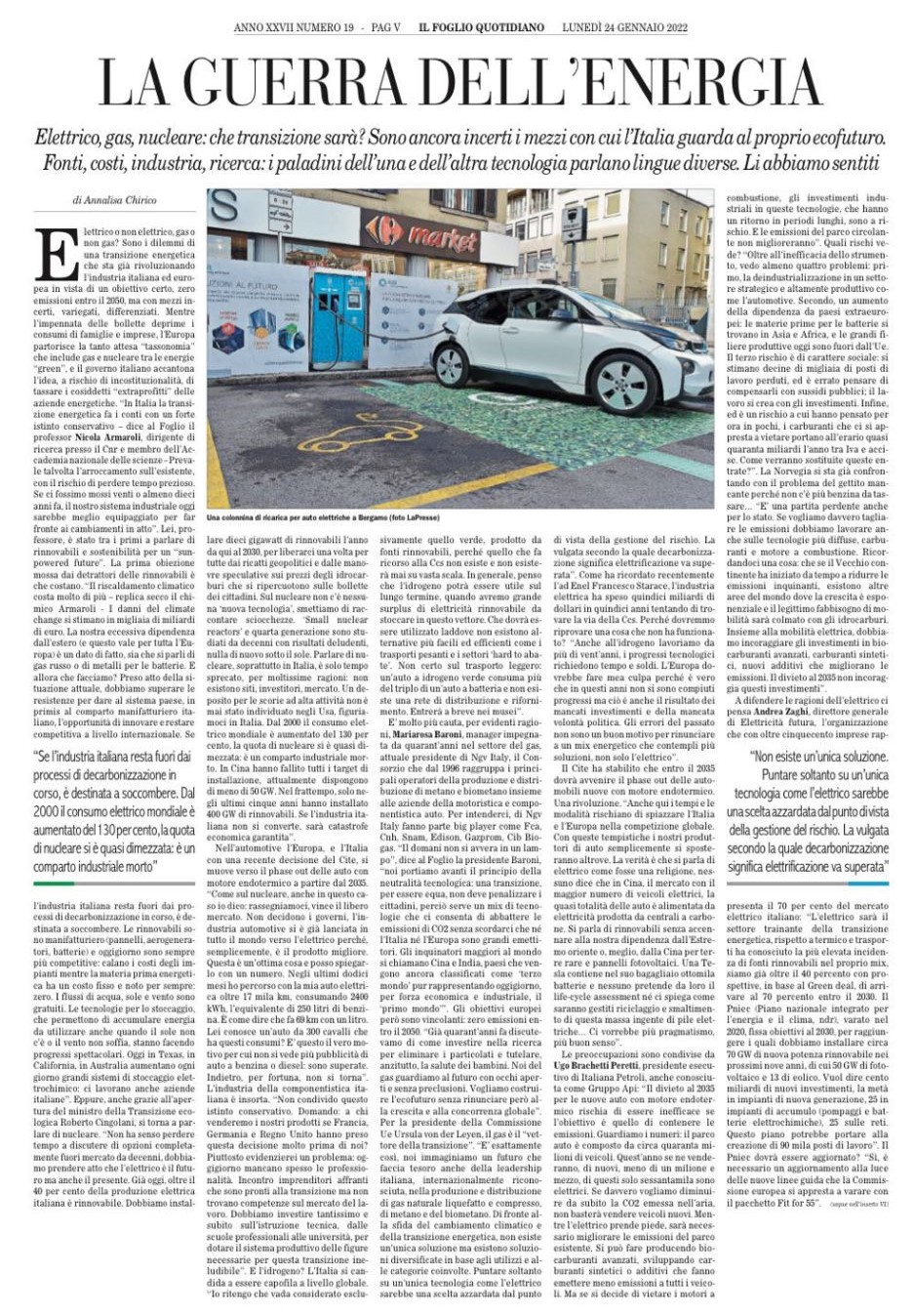 Andrea Zaghi, Direttore generale Elettricità Futura, su Il Foglio Quotidiano spiega perché l'elettrico sarà il settore trainante della transizione energetica e quali benefici l'Italia potrebbe ottenere da una crescente elettrificazione dei consumi alimentata dalle energie rinnovabili.