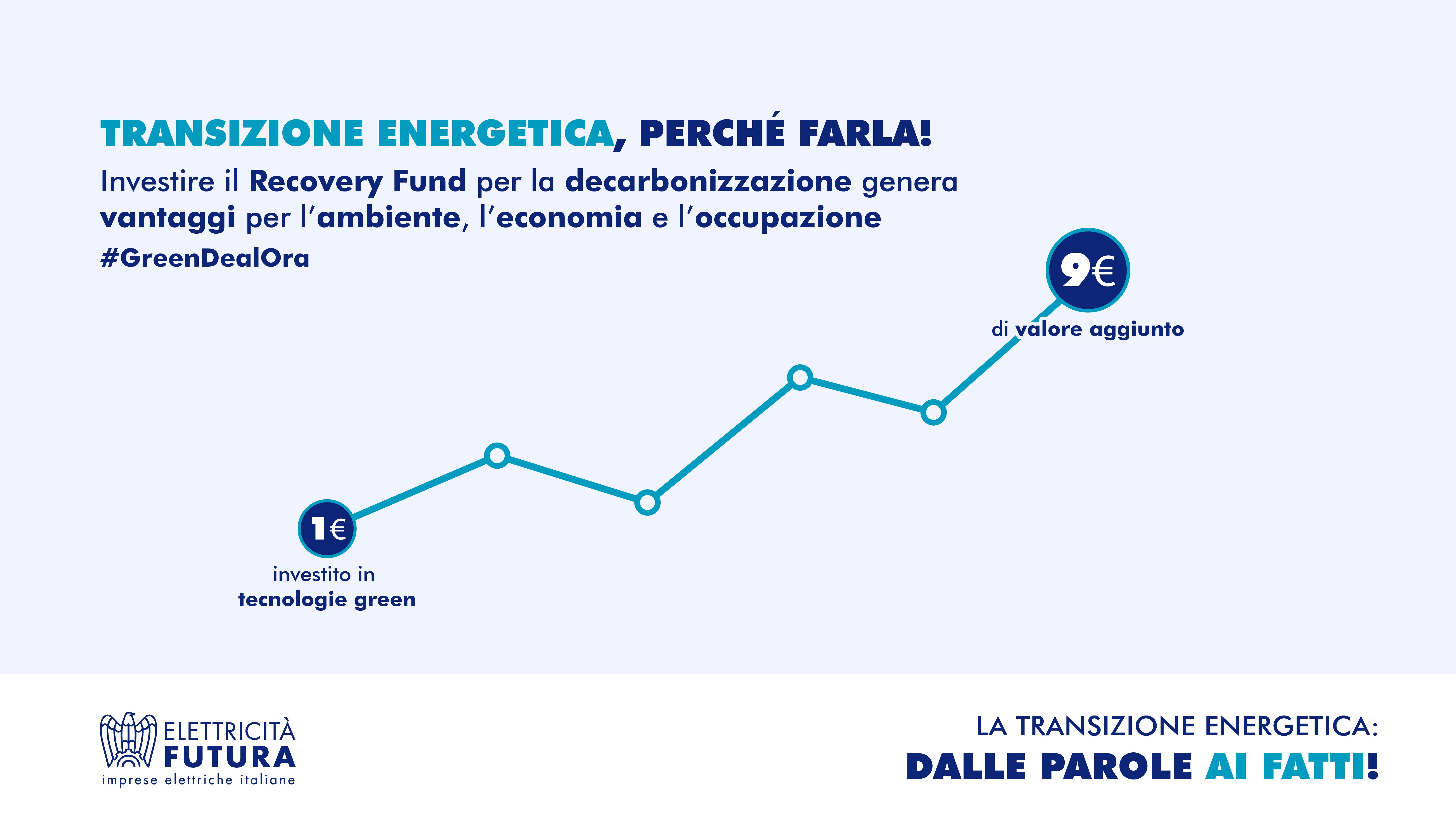 Il Green Deal è un’opportunità di sviluppo economico e sociale per il Paese. Nel nostro settore verranno generati benefici anche sull’occupazione e mobiliterà nei prossimi 10 anni in Italia nel solo settore elettrico circa 50.000 nuovi occupati permanenti al 2030 e 40.000 nuovi occupati temporanei annui per un totale di 90.000 nuovi occupati al 2030.