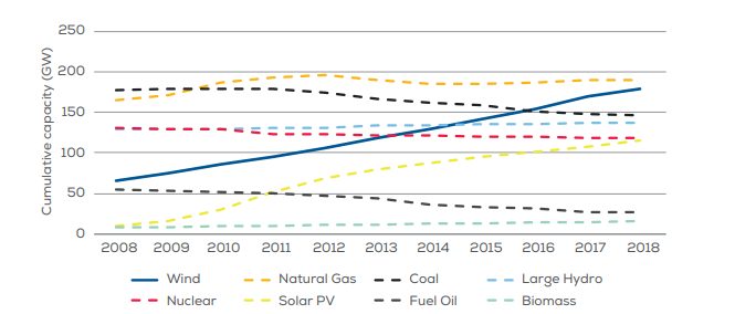 Evoluzione della capacità cumulativa installata nell’Unione Europea 2008-2018