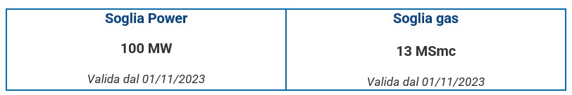 Le soglie valide per il periodo 01/06/2023 – 31/10/2023 sono confermate fino al prossimo ricalcolo.