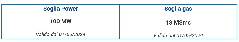 Le soglie valide per il periodo 01/11/2023 – 30/04/2024 sono confermate fino al prossimo ricalcolo.