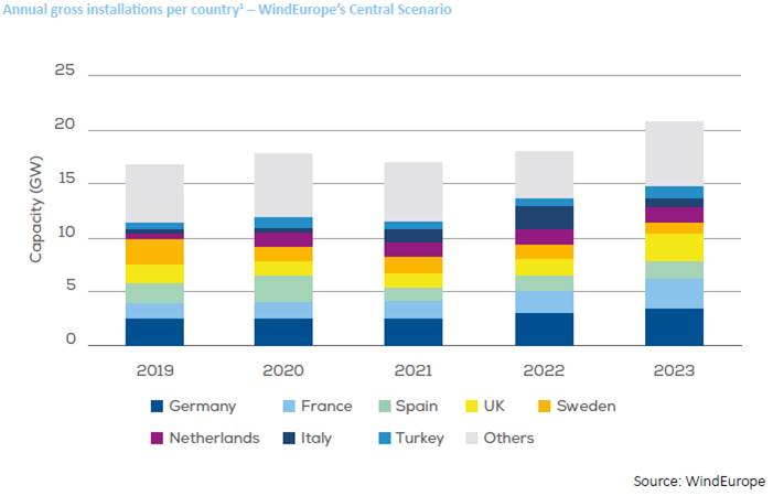 Pubblicato il “Wind Energy Market Outlook 2019-2023” di WindEurope a cui Elettricità Futura ha contribuito.